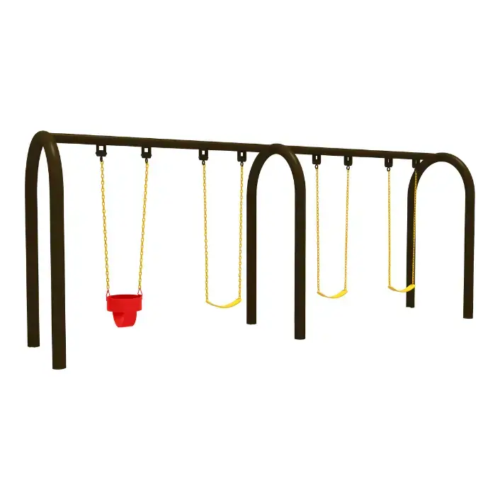 تصميم قوسي أنيق وآمن يضم أربعة مقاعد (منها مقعد مخصص للأطفال الصغار)، مثالي للحدائق والساحات الخارجية.